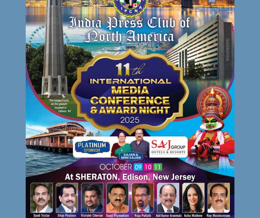 ഇൻഡ്യാ പ്രസ് ക്ലബിന്റെ (ഐ പി സി എൻ എ)യുടെ പ്രബുദ്ധമായ പ്രയാണ വഴികളിൽ മാധ്യമ സംസ്കാരത്തിന് പുതിയൊരു ദിശാബോധമേകി ന്യൂ ജേഴ്സി സമ്മേളനത്തിന് തയ്യാറെടുപ്പുകൾ പൂർത്തിയാവുകയാണ്. ശുഭ പ്രതീക്ഷകളുമായി എത്തുന്ന ദേശീയ സമ്മേളനത്തിന് സ്നേഹത്തിൽ കൊരുത്ത ആശംസകൾ .