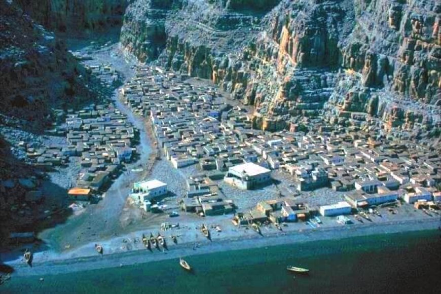 Kumzar is not connected by road; it is reachable only by boat from the nearby town of Khasab.